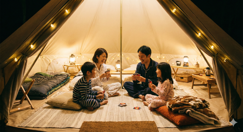 「手ぶら」という言葉に甘えすぎず、少しの工夫と便利グッズをプラスするだけで、子連れグランピングの楽しさは何倍にも感じます。